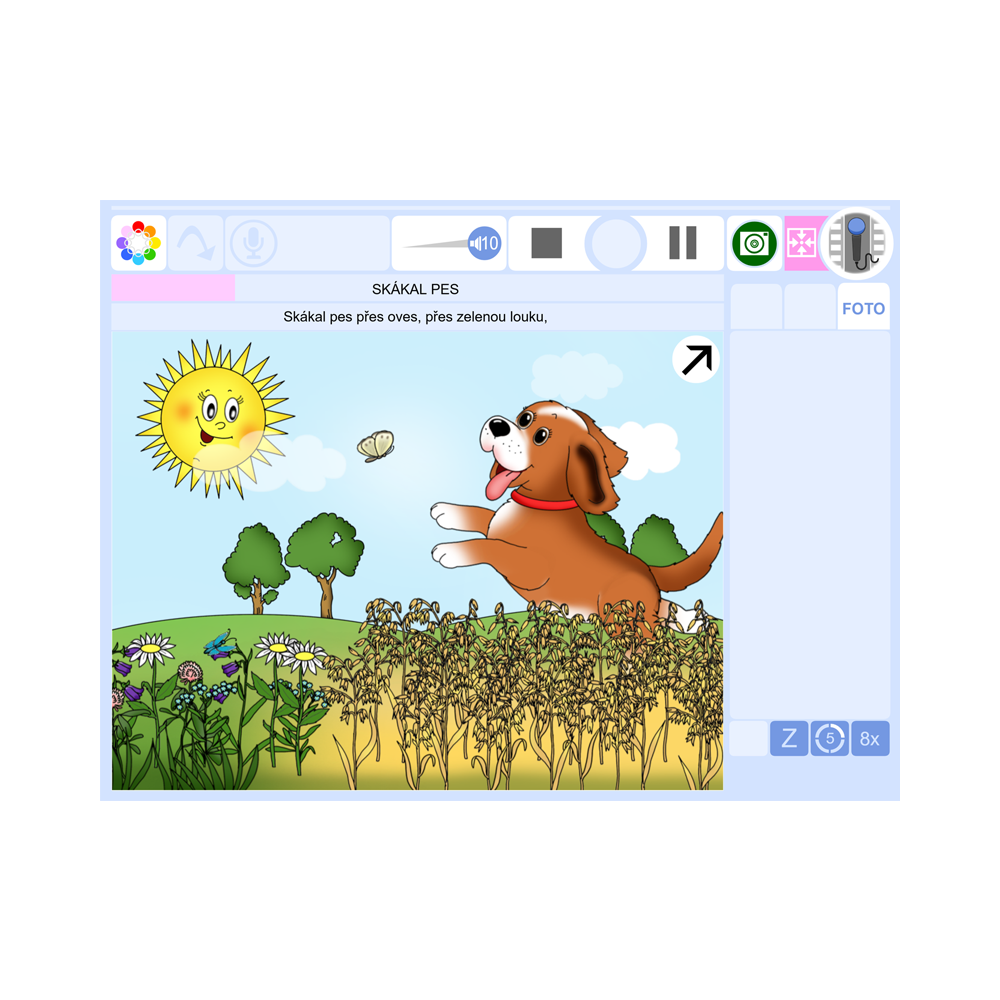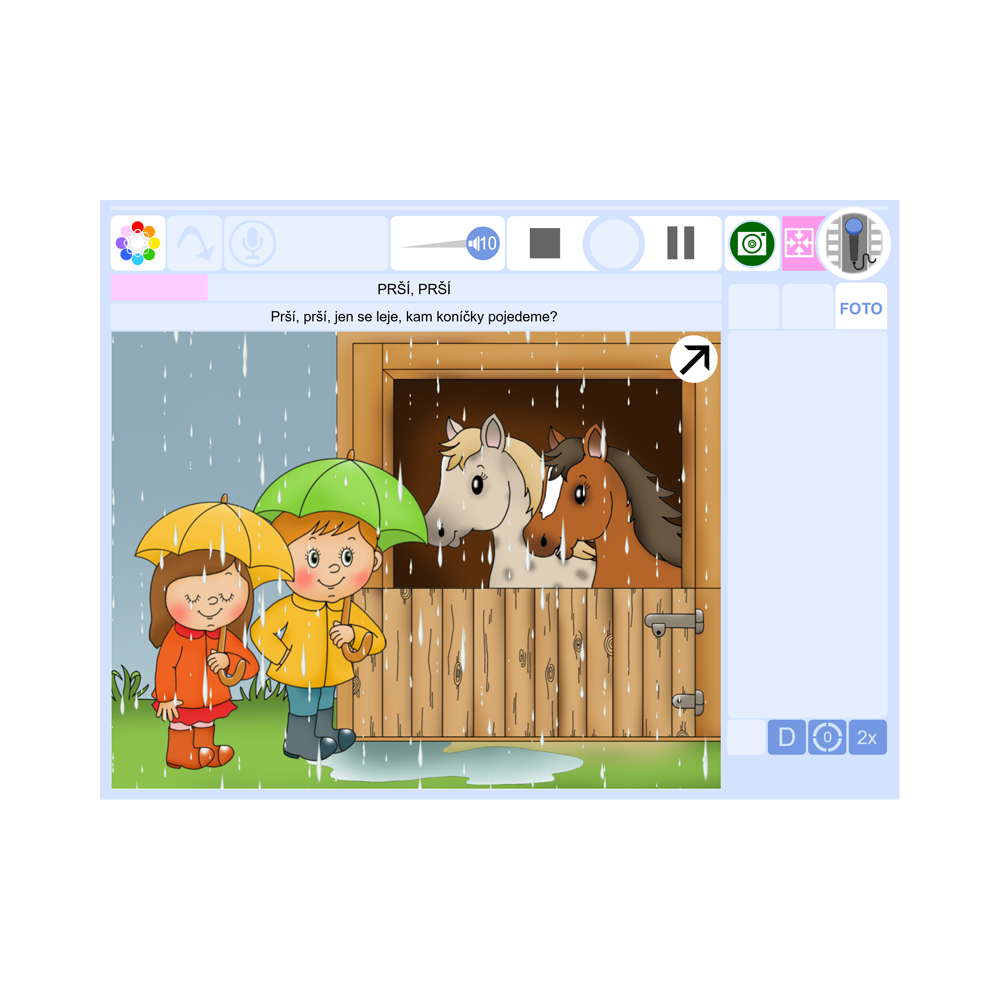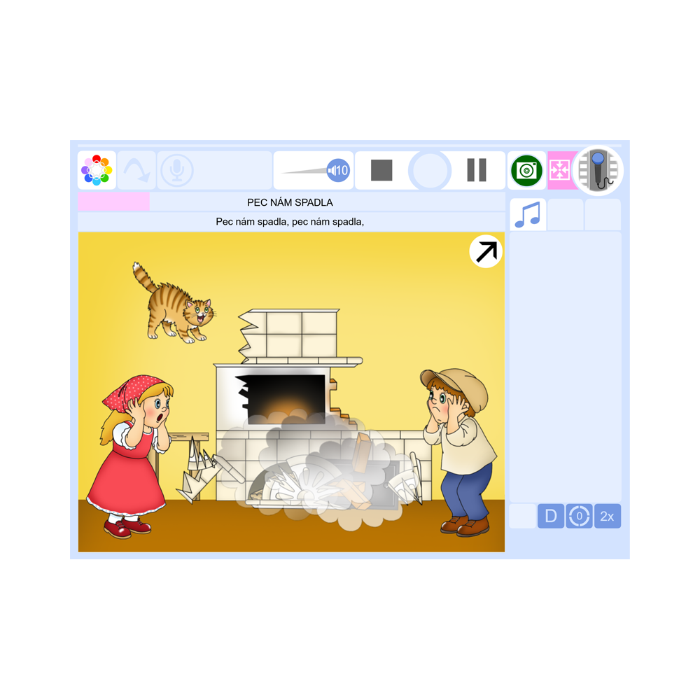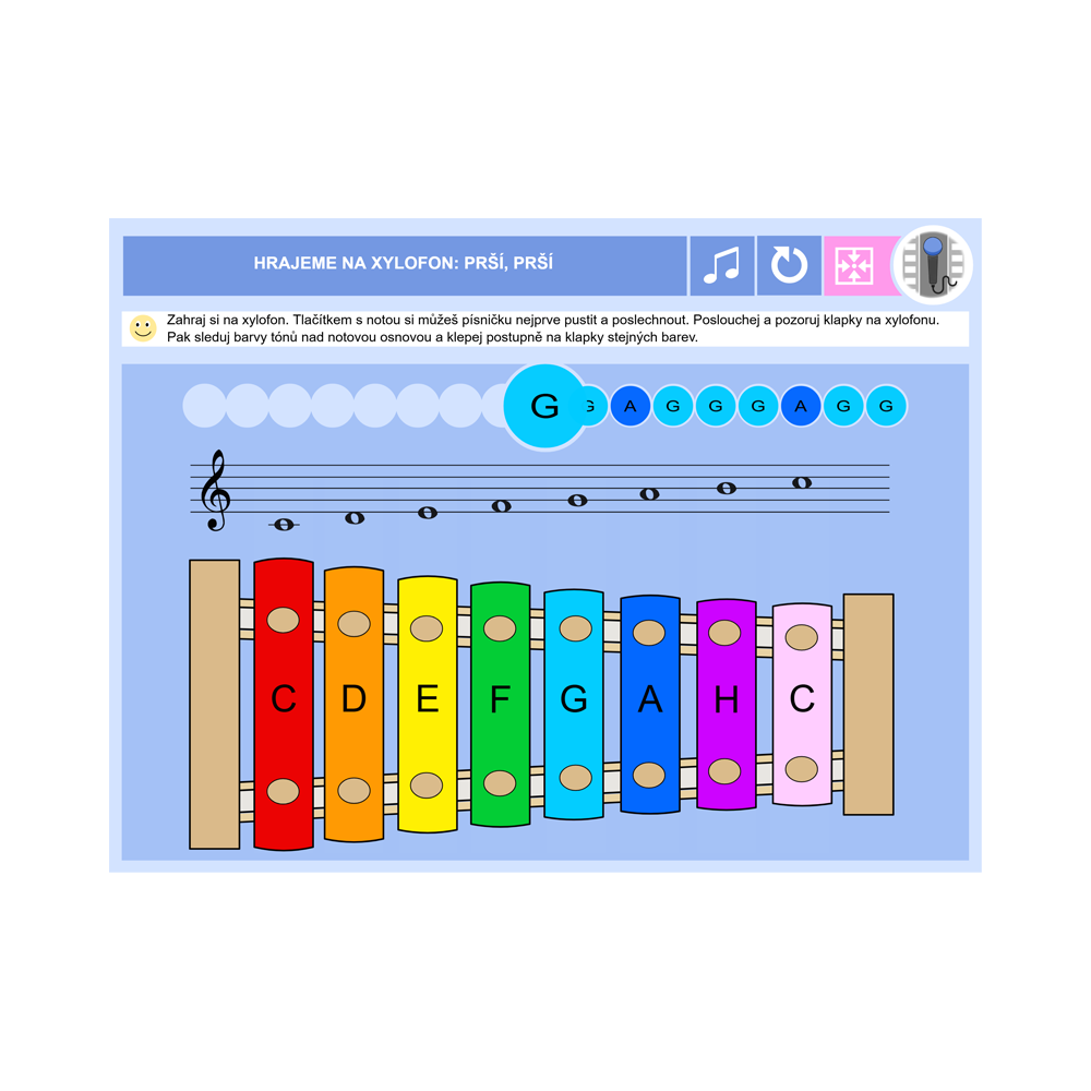 Animované zpracování nejznámějších dětských písniček i hymny České republiky s tiskem barevných i černobílých obrázků děje i not na xylofon, s hrou na xylofon a podle vybavení Vašeho přístroje mikrofonem případně i webkamerou s možností karaoke s nahráváním audio i videozáznamu animace nebo animace se záběrem kamery.